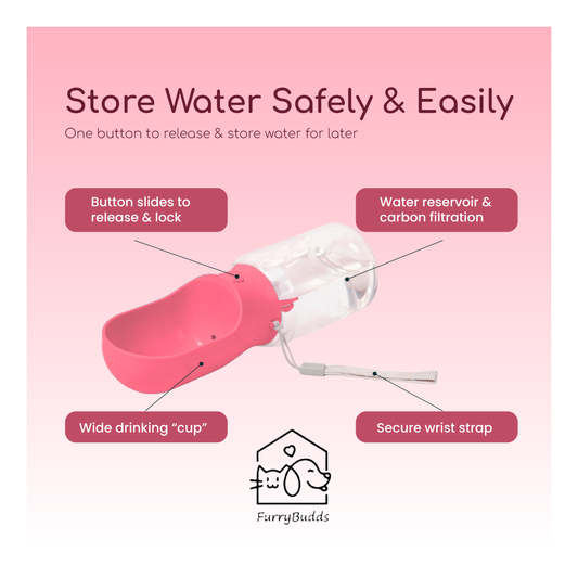 Furry Budds 12oz Dog Water Bottle - Pink